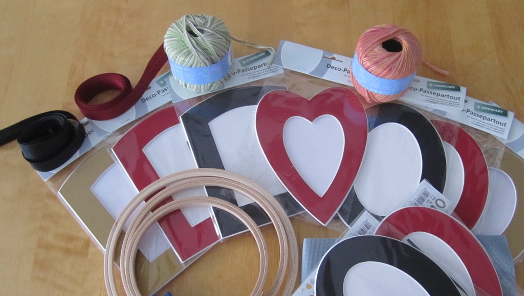 This time I showed amazing self control and did not purchase any linen. Instead I got some hoops, fabric edging and mats to finish my smaller designs. The yarn will be used for some other craft project that is in the works. My only indulgence was a piece of dusty blue aida for 1 EUR. This will also be put to good use for one of my designs.