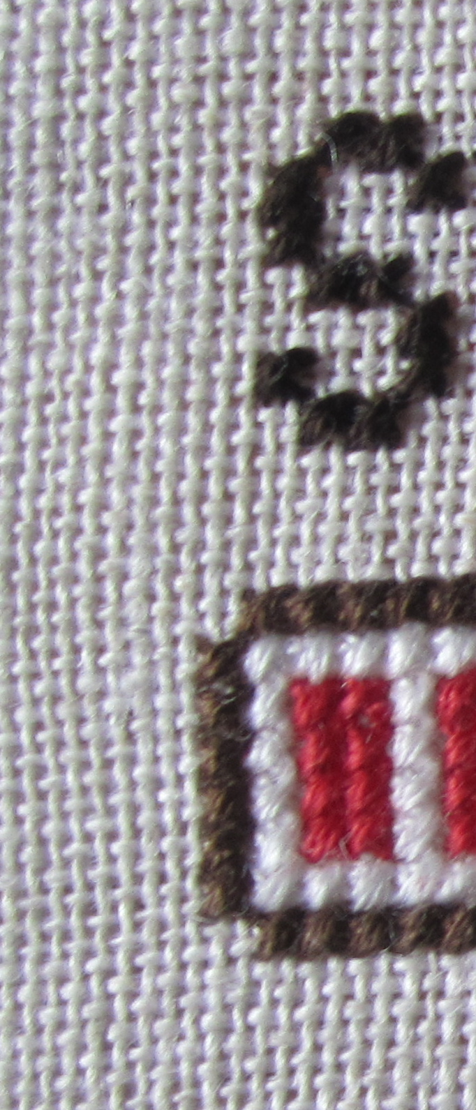 Since it’s a small narrow and stiff piece of Aida I don’t need a frame. This is such a change from past trips when I brought along large projects with complex charts and many color changes. In the end I didn’t stitch at all because it was too much trouble to get my project out and set up.