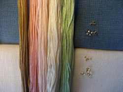 First I had what I still think would have looked best for this design salmon and cream fabric with tender early spring thread colours: