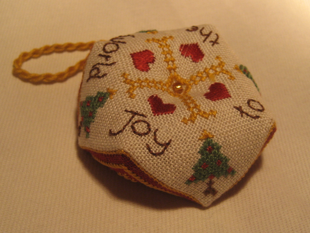The “Joy To The World” biscornu would make a wonderful ornament to add to your Christmas tree this year. It would also make a great gift.
